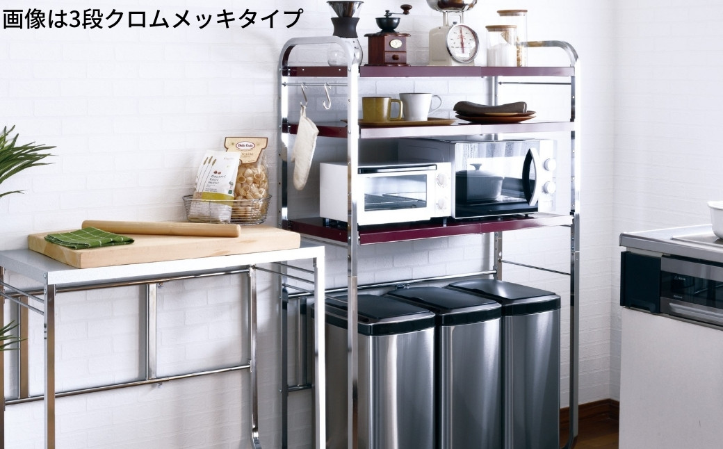 - 伸縮式キッチンペールラック3段 クロムメッキ【220S006】