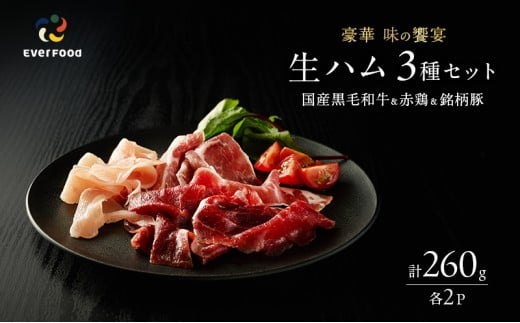 - 生ハム セット 3種 各2パック 豪華味の競宴 黒毛和牛 銘柄豚 赤どりの生ハム