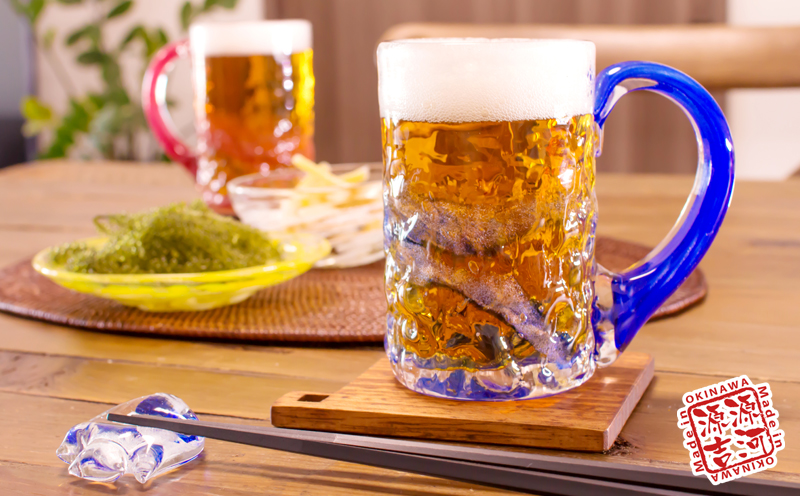 - 【琉球ガラス】源河源吉 源河の泡 ビアマグ(青)
