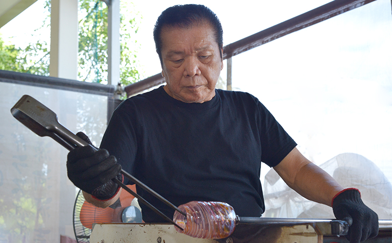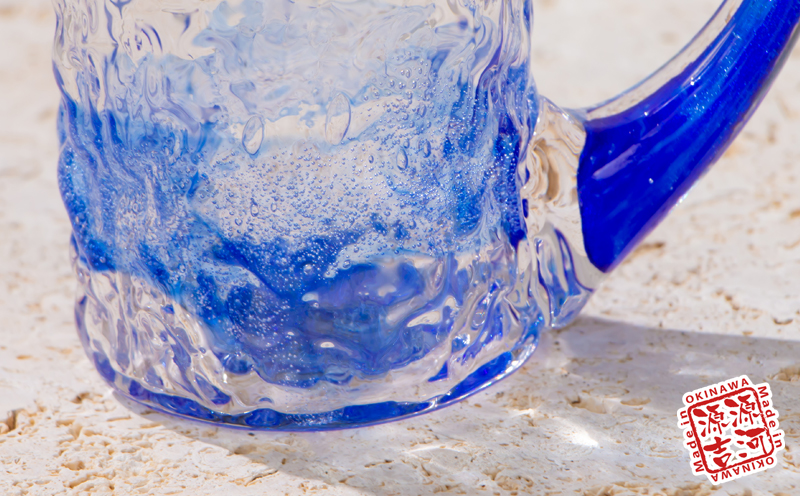 【琉球ガラス】源河源吉 源河の泡 ビアマグ(青)