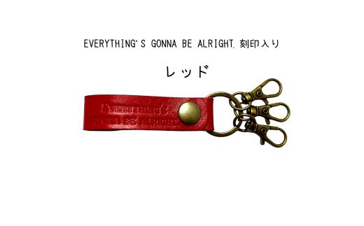 - サドルレザー キーホルダー 本革 レッド Everything's gonna be alright.刻印入 SLK-001-red 赤 メンズ レディース 【015S121】