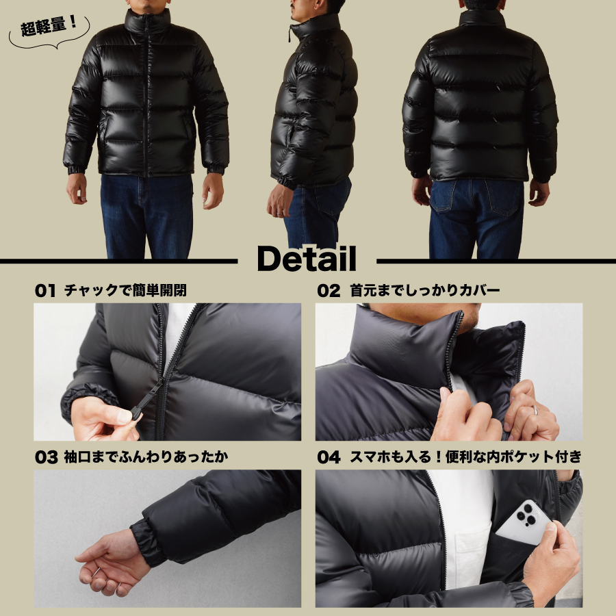 - 高品質 ダウンジャケット 900フィルパワー メンズ 日本製 Mind 超軽量 羽毛 Sサイズ ブラック