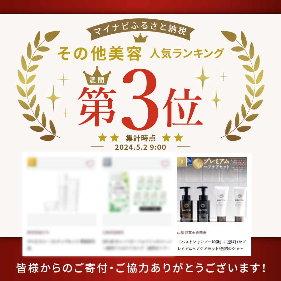 - 「ベストシャンプー10傑」に選ばれたプレミアムヘアケアセット(金銀のシャンプー &白金トリートメント)