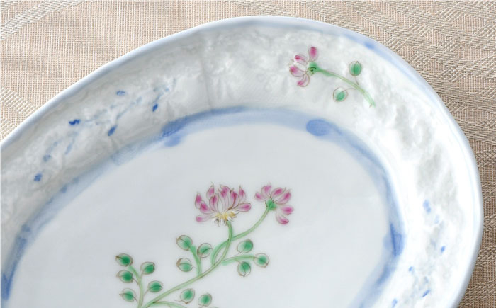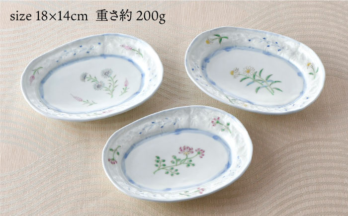 - 【波佐見焼】小花紋レース 小判皿 プレート 3枚組 食器 皿 【藍水】 [GB27]