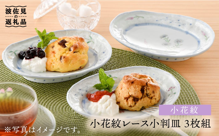 【波佐見焼】小花紋レース 小判皿 プレート 3枚組 食器 皿 【藍水】 [GB27]