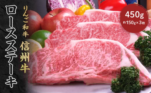 - りんご和牛 信州牛 ロースステーキ 450g(約150g×3枚)【1304457】