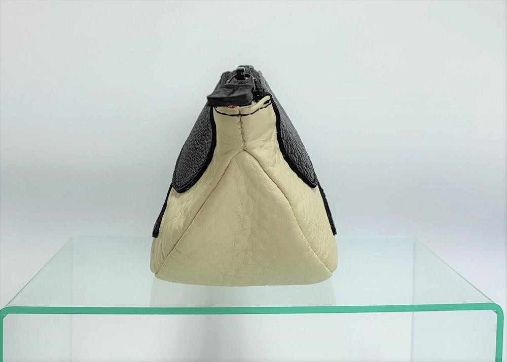【ふるさと納税】パンチング三角ポーチ小 黒 25964-01 / 平野鞄 ポーチ セカンドバッグ カード入れ ペン差し A5サイズ収納対応 出し入れしやすい ループハンドル フォーマル シンプル デザイン 高級 豊岡製鞄 日本製 かばん カバン バッグ 鞄