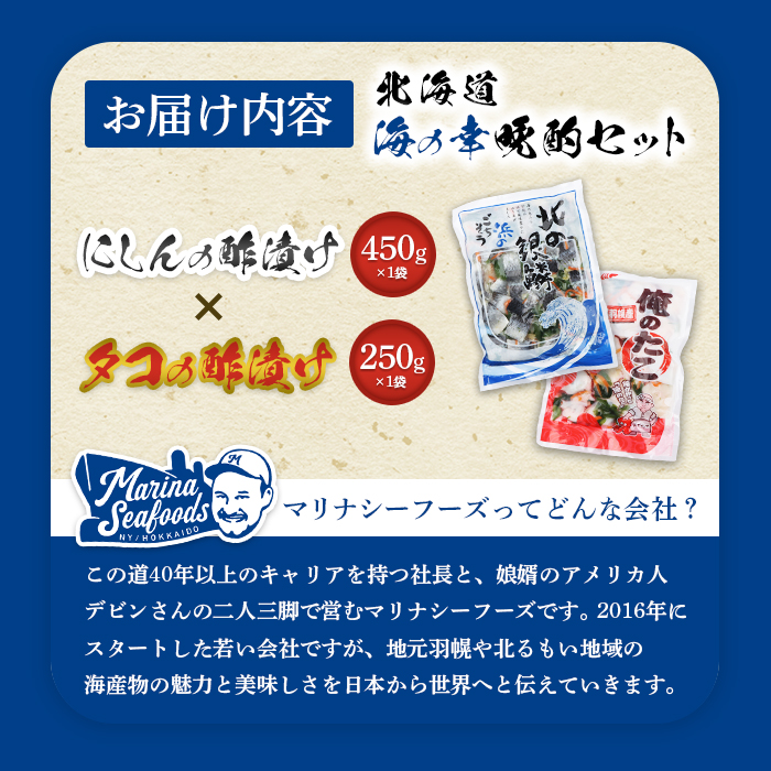 - 【贅沢酢漬けセット!】 オレタコ250g & 北の銀鱗450g ×各1袋(タコの酢漬け&にしんの酢漬け)【02121】