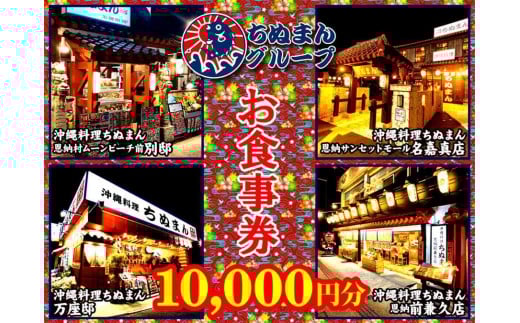 - 沖縄料理ちぬまん 恩納村4店舗で使える10,000円お食事券