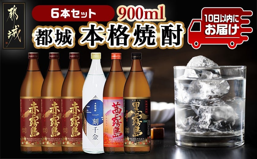 都城本格焼酎 (25度) 900ml×6本セット≪みやこんじょ特急便≫_AC-6001_(都城市) 焼酎 茜霧島2本 / 赤霧島2本 / 黒霧島EX1本 / 一刻千金1本 全て25度 900ml 5合瓶 五合瓶 いも焼酎 霧島酒造 大浦酒造