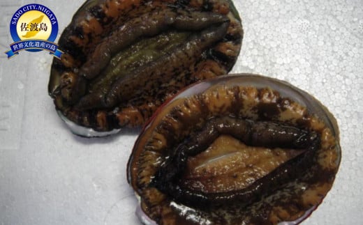 - 日本海 佐渡産 荒海育ち天然活あわび2枚(200g見当)