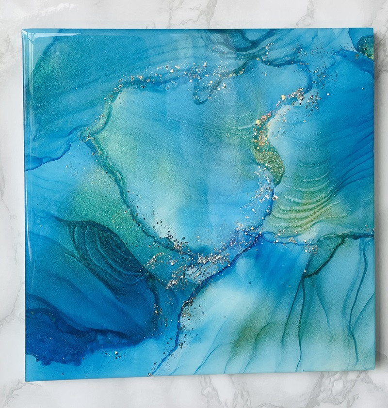 - 一点限り アルコールインクレジン作品 (額縁あり)【青/0022】|絵画 インテリア オリジナル作品 一点物 [0786]
