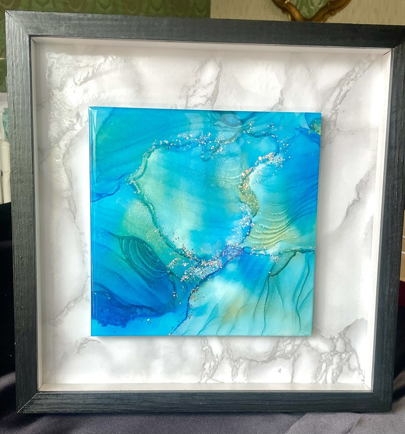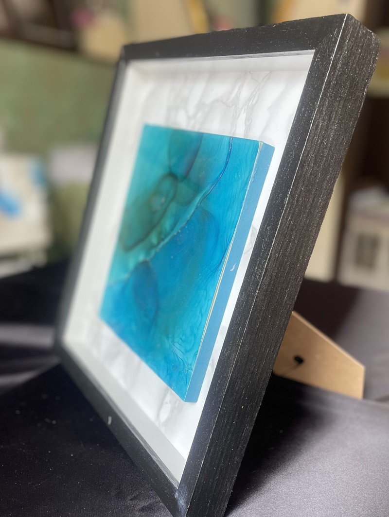 一点限り アルコールインクレジン作品 (額縁あり)【青/0022】|絵画 インテリア オリジナル作品 一点物 [0786]