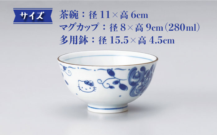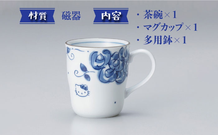 【美濃焼】 ハローキティ ブルーローズ 茶碗 ・ マグカップ ・ ボウル 3点セット 【株式会社二幸】食器 鉢 コーヒーカップ [MCZ025]