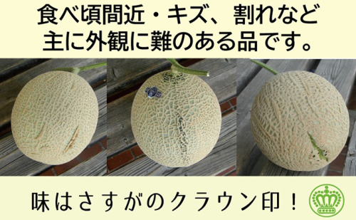 高級ブランドメロンとして知られるクラウンメロンがもらえます。見た目に少し傷があるため訳あり品ですが、味は一級品です。甘さと香りが際立ち、ジューシーな果肉が口の中でとろけます。贅沢なひとときを楽しむのにぴったりの一品です。自宅での特別なデザートとして、または大切な人への贈り物としてもおすすめです。見た目にこだわらず、味を重視する方にぜひ試していただきたい逸品です。