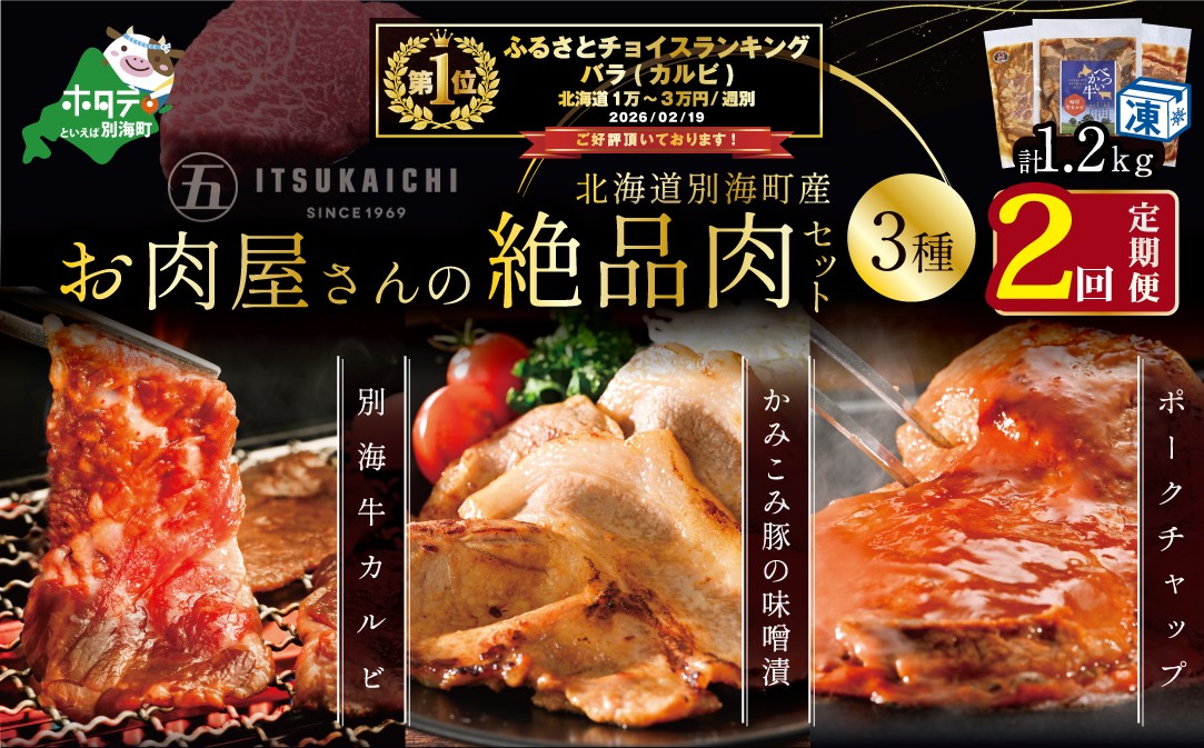 【毎月定期便】別海牛 味付け カルビ 400g かみこみ 豚味噌漬け 400g ポークチャップ 400g 計1.2kg セット ×2ヵ月【有限会社五日市】 焼肉 牛肉 豚肉( 肉 にく 豚肉 牛肉 焼肉 セット 北海道 別海町 ふるさとチョイス ふるさと納税 仕組み キャンペーン 限度額 計算 ランキング やり方 シミュレーション チョイス チョイスマイル 肉 牛肉 定期便 )