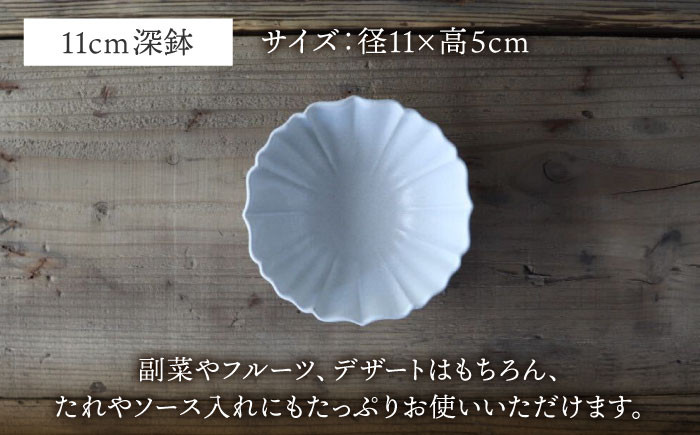 - 【美濃焼】稜花 14cm・11cm 深鉢 4点 セット(白百合×墨)【Felice-フェリーチェ-藤田陶器】 [MBX062]