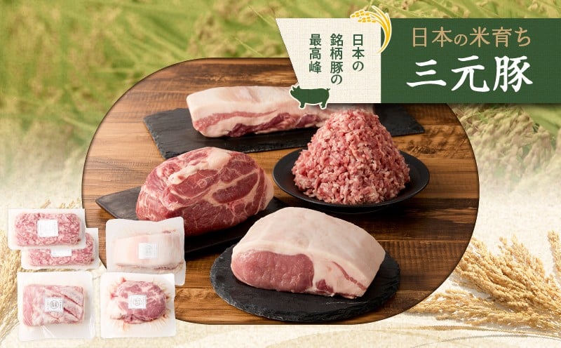 日本の米育ち平田牧場 三元豚ロースブロック・バラブロック・肩ロースブロック・挽肉 各600g(計2.4kg) T036-011