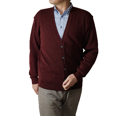 無地 メンズニット カーディガン ワイン S寸 15230【1234090】