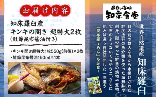 知床羅臼産キンキの開き超特大2枚(鮭節昆布醤油付き) 生産者 支援 応援