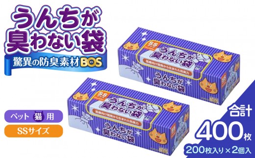 驚異の 防臭 袋 BOS うんちが臭わない袋 BOS ネコ用 SSサイズ 200枚入り×2個セット 計400枚