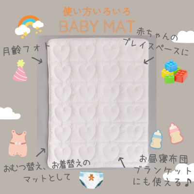 - ベビーのプレイマットやお昼寝マット・大人用のブランケット・肌掛・マルチに使えるハートキルティング・白【1218794】