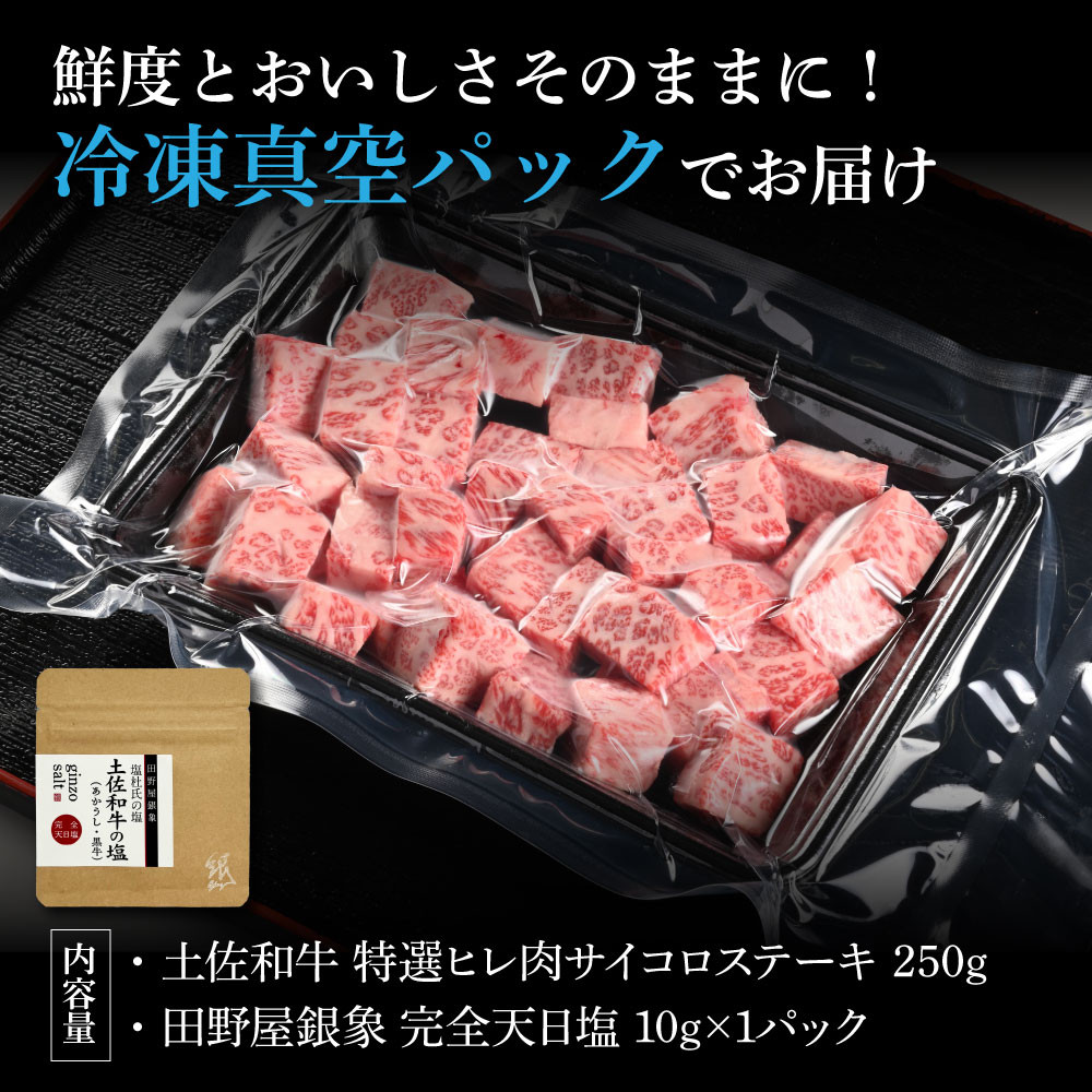 土佐和牛 特選ヒレ肉サイコロステーキ250g 田野屋銀象完全天日塩1P付き 特選 長期熟成肉 田野屋銀象 完全天日塩付き ヒレ肉 ステーキ 肉 お肉 和牛 牛肉 国産 牛 熟成肉 サイコロステーキ