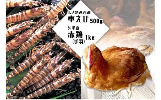 - 活〆急速冷凍車えび500g・久米島赤鶏(手羽)1kgセット