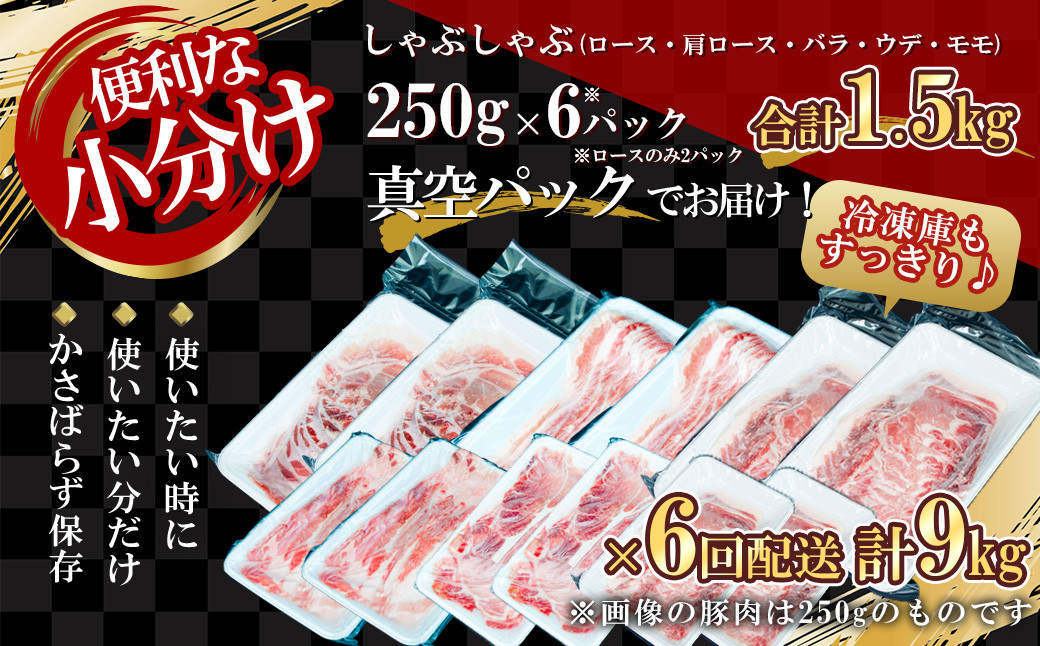 - 【定期便全6回】【農場直送】真空パック 北海道産 北島ワインポーク しゃぶしゃぶ全部位 食べ比べセット 1.5kg 全計9kg【小分け】