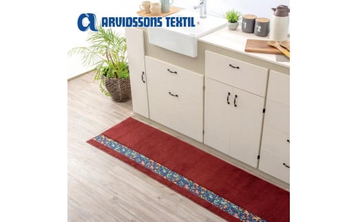 - 北欧の「幸せを運ぶ馬」ダーラヘスト柄のキッチンマット ワインレッド(縦50cm×横120cm)