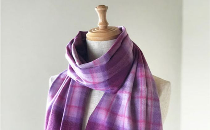 - Made in Japan カシミヤ100%チェックストール(パープルピンク) RF254-NT【ファッション小物・チェックストール・ストール】