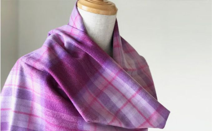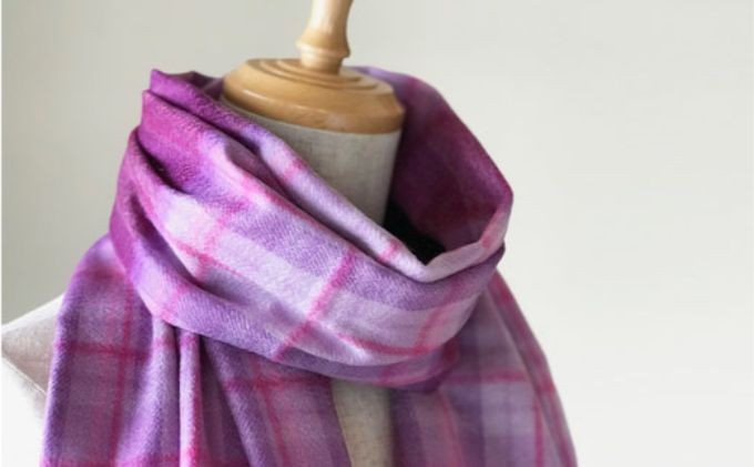Made in Japan カシミヤ100%チェックストール(パープルピンク) RF254-NT【ファッション小物・チェックストール・ストール】
