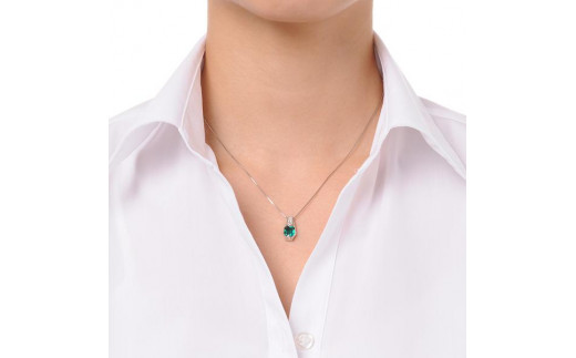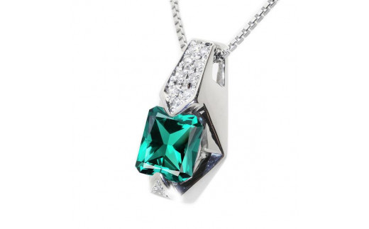 - 【京セラ】クレサンベール〈エメラルド・天然ダイヤモンド〉ペンダント【プレミアム/プラチナ/プリンセスエメラルドカット/5月誕生石】