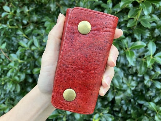 - 鹿革&猪革のキーケース(三つ折り式)【赤】レザー 鍵ケース 玄関の鍵 車 かぎ 革小物 革製品 ハンドメイド レザークラフト アクセサリー お洒落 金属 ギフト プレゼント 鞣し【R00674】