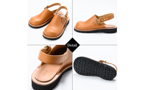 P1-033-F-235 本革ハンドメイドのおでこ靴「Blues・サボサンダル」(レッド・23.5cm)【ヒラキヒミ。】