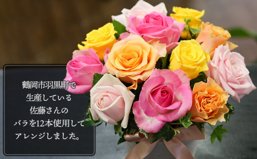 佐藤さんちのバラのアレンジメント【ピンクオレンジ系】 薔薇12本 A75-903 花蔵