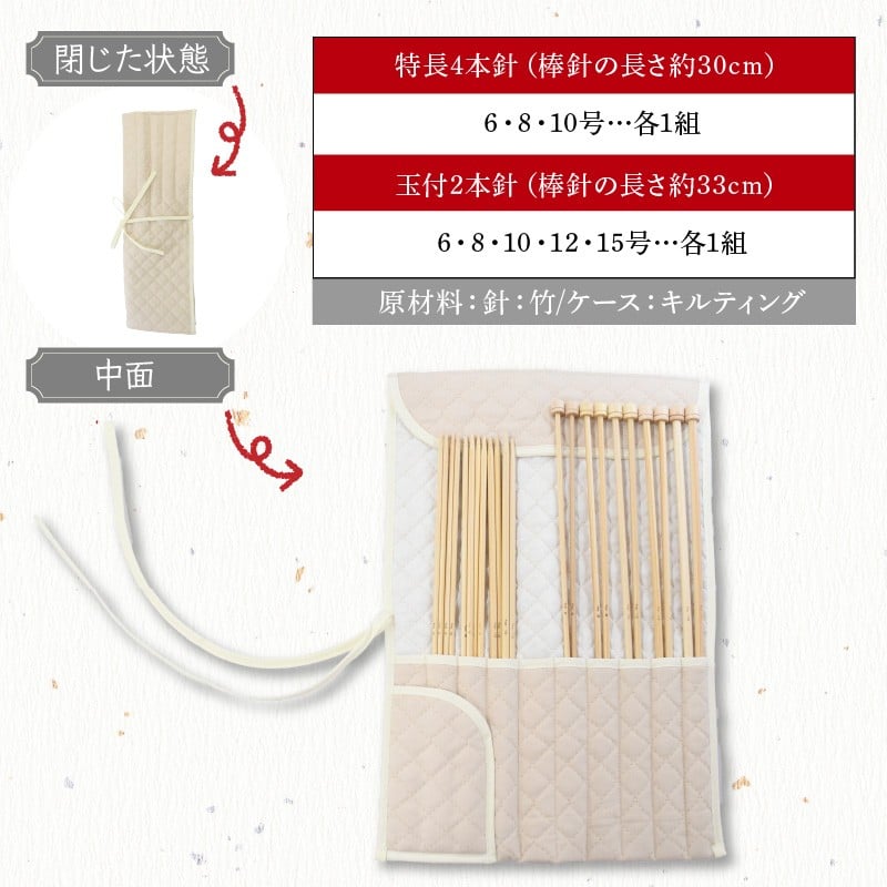 編針セット(初心者向け) セット 初心者向け ケース付き 特長4本針 玉付2本針 自然素材 竹編針 竹 編み針 編み物 編みやすい マフラー セーター 手芸 手芸用品 道具 ハンドメイド 趣味 高山 地場産業 奈良県 生駒市 送料無料