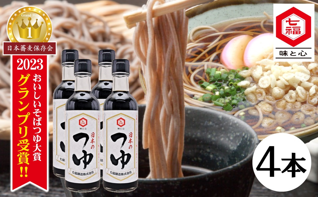 おいしいそばつゆ大賞2023第1位 グランプリ獲得!七福醸造が本気で挑戦した辛口そばつゆ 日本のつゆ300ml 4本セット つゆ 麵 そば 蕎麦 そうめん ざるそば かつお節 しょうゆ 出汁 だし 年越し たっぷり H001-084