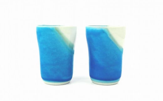 - 【青風窯:玉田 彰作】海彩(うみいろ)フリーカップ(丸)2個 セット