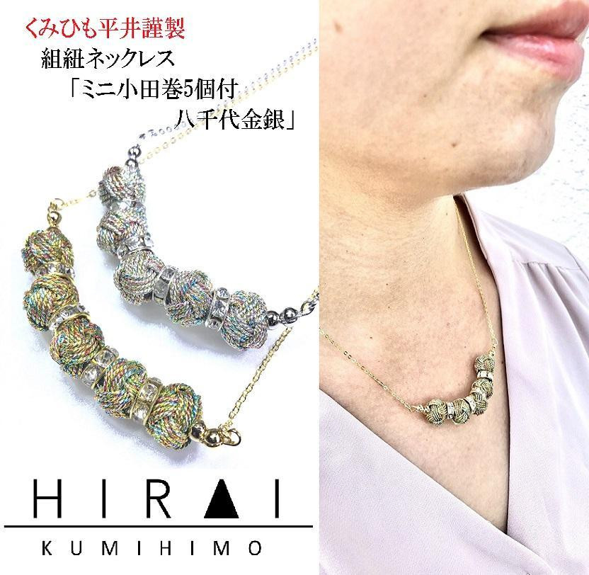 - 【伊賀組紐】ネックレス ミニ小田巻5個付 八千代金銀