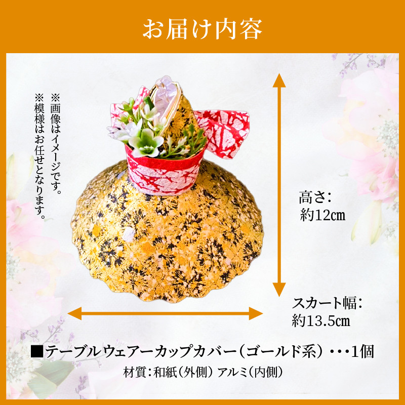 - 華やかな食卓で笑顔を飛沫感染テーブルウェアカバーゴールド系着物ドールリウムⓇ「華姫Ⓡ」 テーブルウェアカバー カップカバー 飛沫防止 食器 蓋 着物ドールリウム 華姫 ゴールド系 和紙 漆喰和紙 抗菌 消臭 調湿効果 華やかな食卓 笑顔 食卓を明るく楽しく テーブル映え 送料無料 お取り寄せ 生駒市