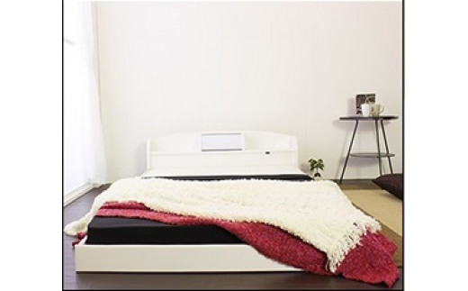 - 【組立サービス付】190 ダブルサイズ 棚照明付フロアベッド 国産ポケットコイルマットレス(108618)付(ホワイト)(1437)