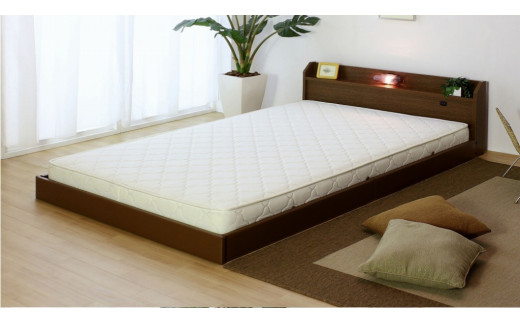 - 【組立サービス付】268 ダブルサイズ 棚コンセント照明付フロアベッド 国産ポケットコイルマットレス(108618)付(ブラウン)(1520)