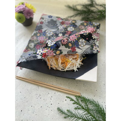- 【ふるさと納税】エシカルラップ和柄ライン黒花柄Lサイズ1枚【1511236】