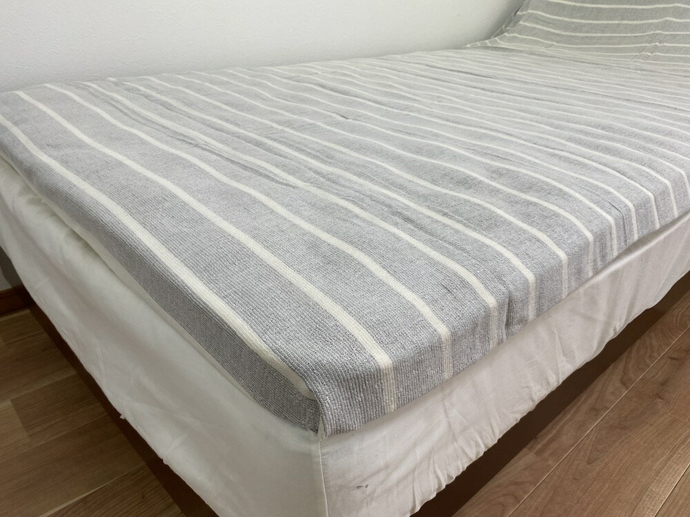- 【ふるさと納税】オーガニックコットン タオルシーツ シングル 145×230cm しまふわ グレー SNS-12GY [4793]