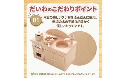 - 木製おもちゃのだいわのミドルキッチンセット《ホワイト》おままごとセット【1389189】