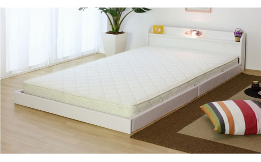 【組立サービス付】268 セミダブルサイズ 棚コンセント照明付フロアベッド 国産ポケットコイルマットレス(108618)付(ホワイト)(1514)