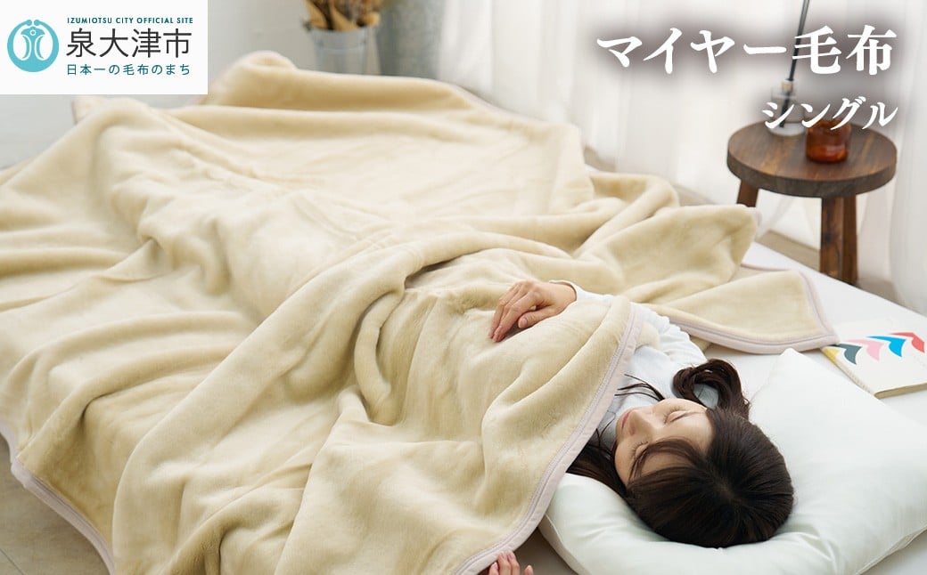 - 日本製 丸洗いOK マイヤー毛布 シングル ベージュ 1枚 (ニューマイヤー毛布)MO-321BE [3675]