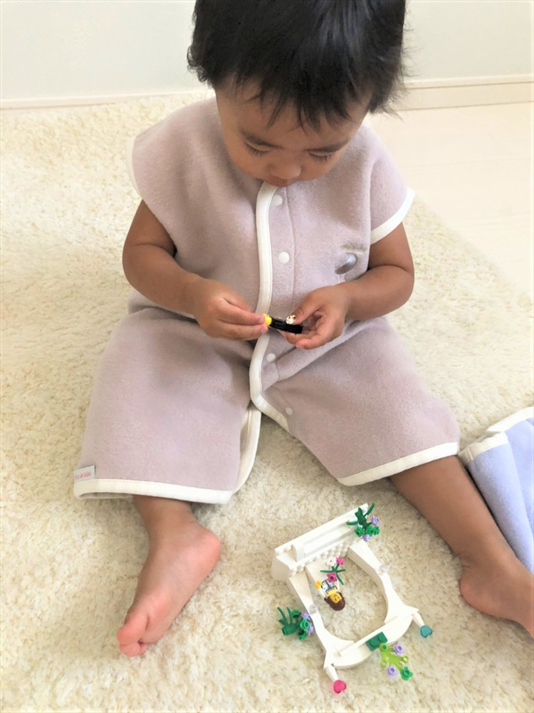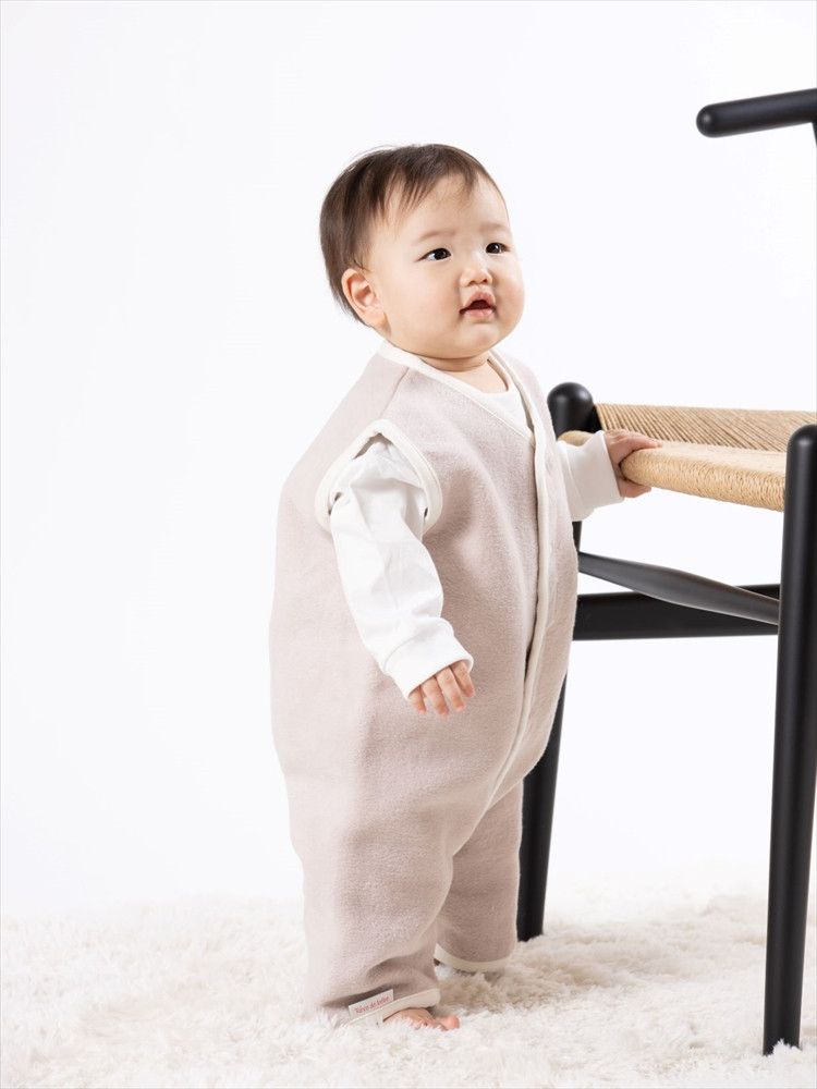 - 綿毛布スリーパー (Mサイズ) 2way仕様で暖か ベージュピンク×ホワイト 毛布の町 (泉大津産) [2437]