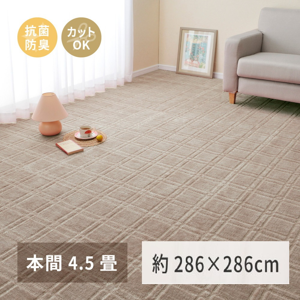 - 日本製 平織カーペット 本間4.5畳 約286×286cm グレージュ 1枚 600098745|抗菌 防臭 新生活 引越し 模様替え 快適 買い替え [3736]